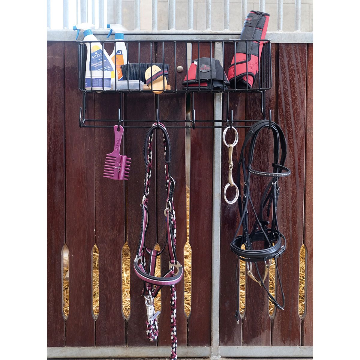 - ideális a lábszárvédő, patacsengő, ápoló felszerelés stb., de a kantár, kötél, kantár stb. elérhető közelségben tartására is