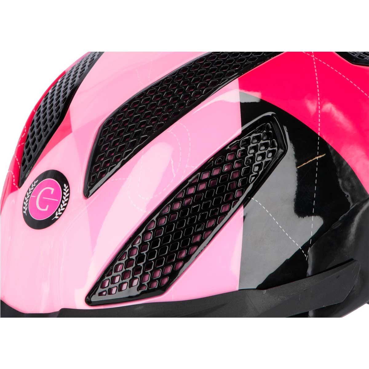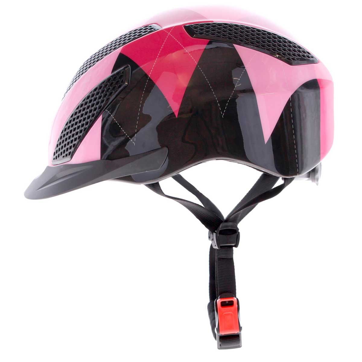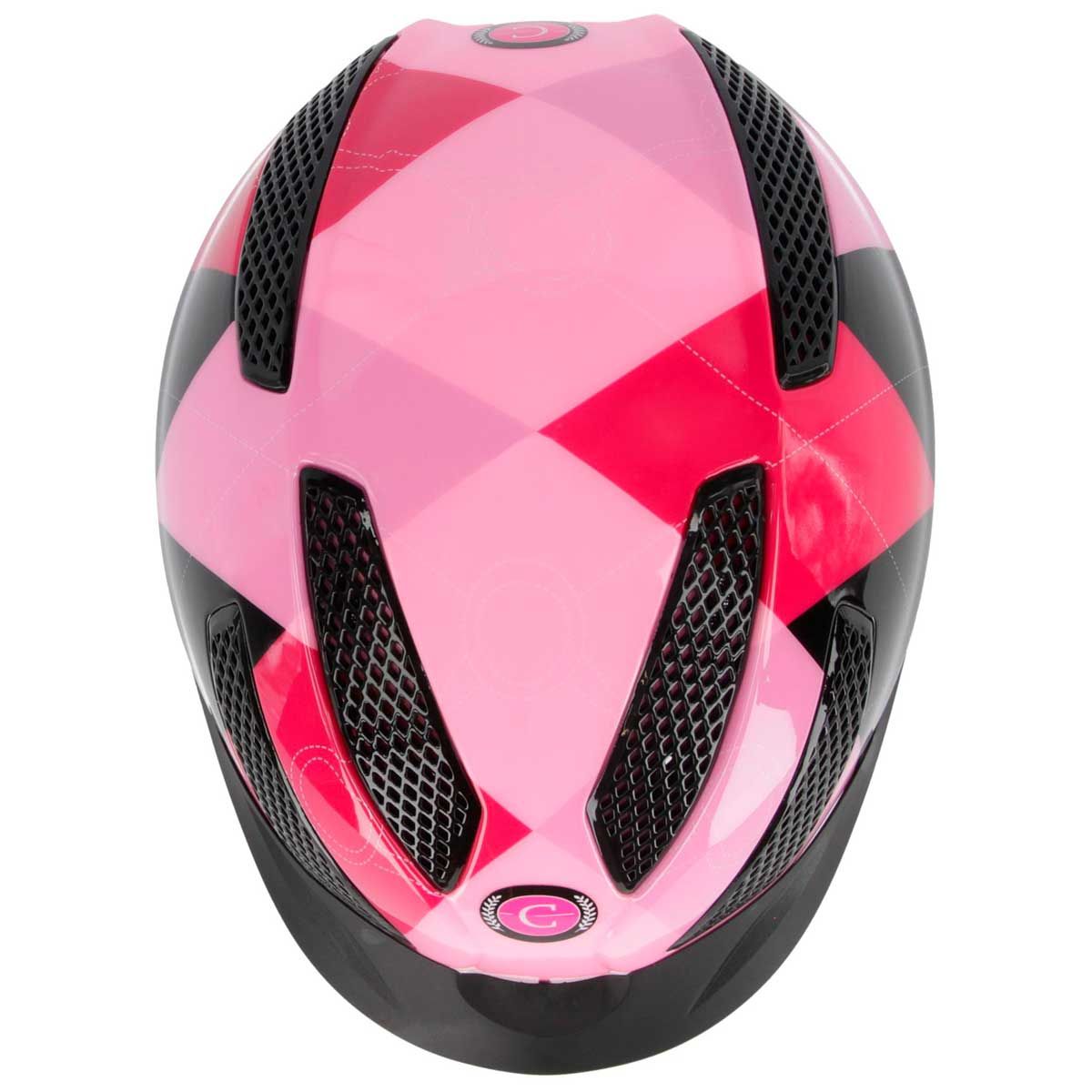Az eXite lovagló sisak a fiatal generáció számára, vonzó kockás mintával, a divatos rózsaszín és lila színekben.