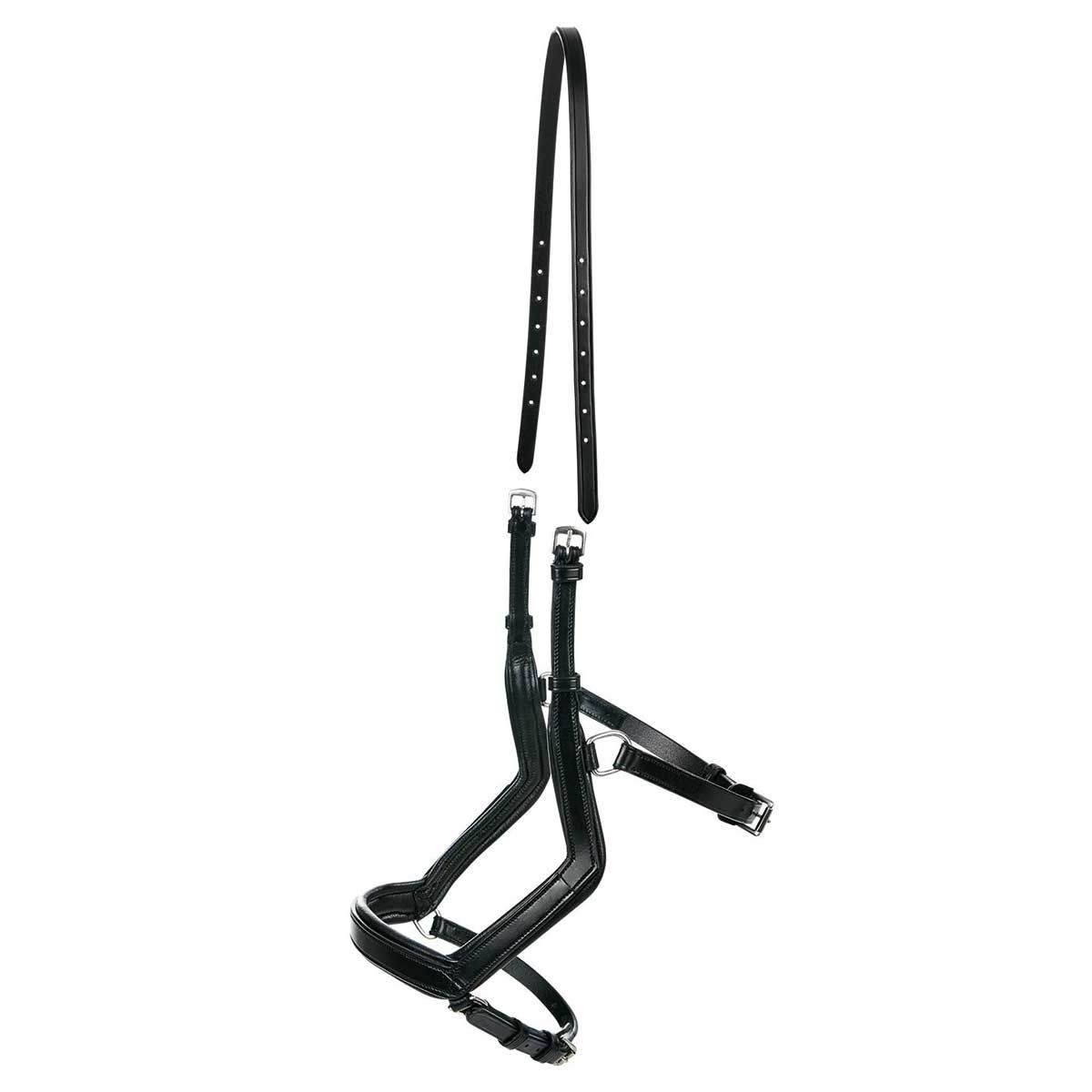 - Az állszíjjal kombinált kiegészítő gumiharang megkönnyíti az alsó állkapocs ágait, és finoman és biztonságosan körülöleli a ló fejét.