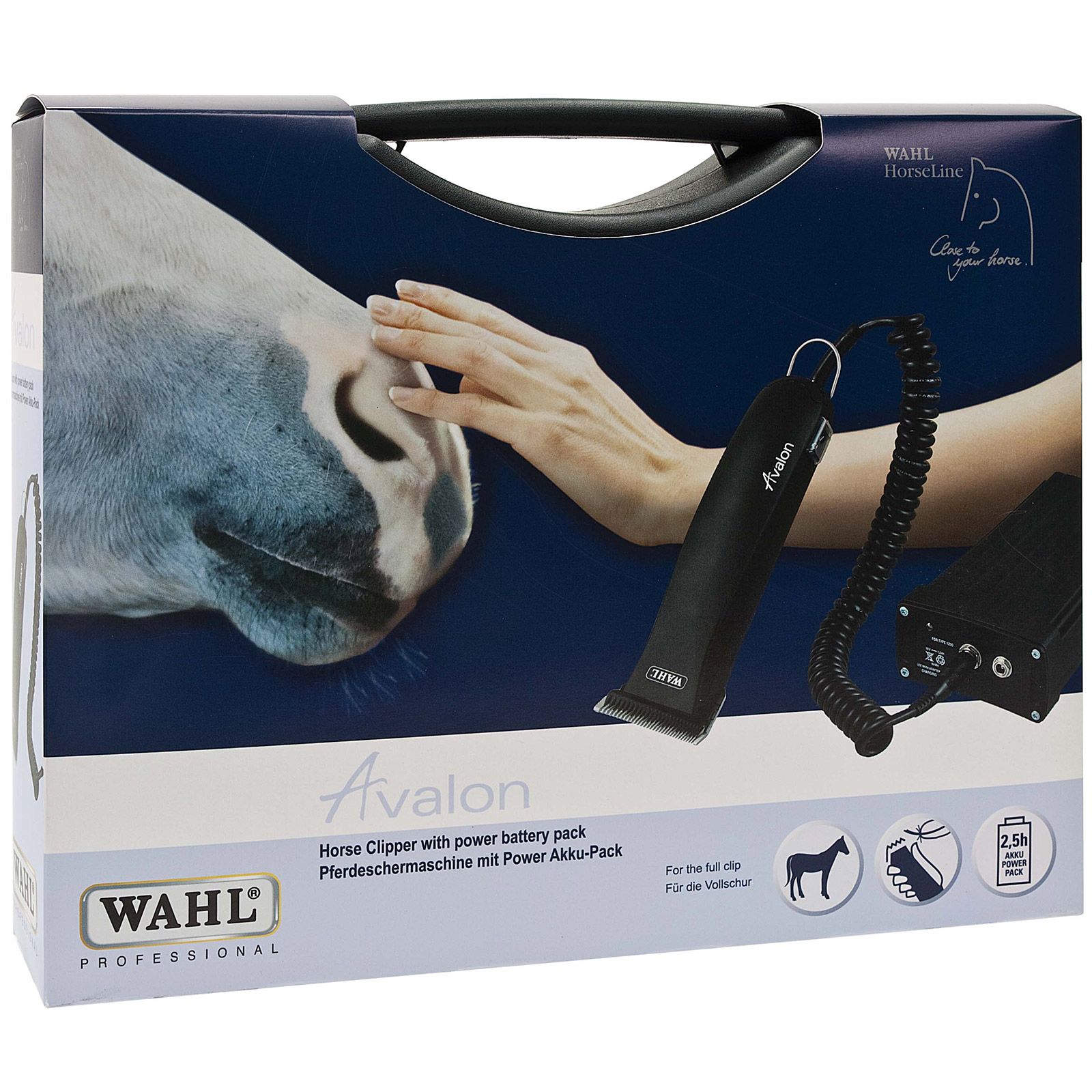 A WAHL Avalon lónyírógép (korábban Moser Avalon) rendkívül nagy teljesítményű akkumulátorral van ellátva, amely 2,5 óra non-stop nyírást tesz lehetővé. A nagyon csendes és erőteljes motornak köszönhetően 3000 percenkénti fordulatszámmal és a kiváló húzóerővel ez a nyírógép nemcsak a nyírási élménnyel győz meg, hanem az érzékeny lovak számára is kiválóan alkalmas. A hordozószíj lehetővé teszi a kényelmes nyírást az egész ló körül.
