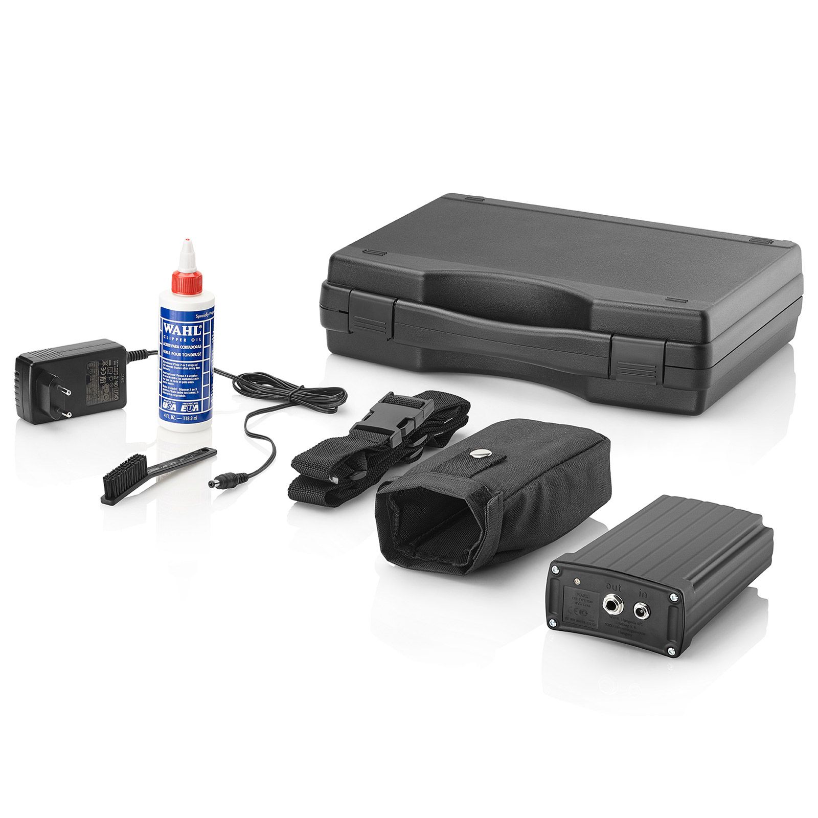 A szuperéles, rozsdamentes acélból készült, 2,3 mm vágási hosszúságú, krómozott, gyémántcsiszolt és Németországban gyártott vágókészlet. A WAHL Avalon akkumulátorcsomagját a mellékelt övre könnyen rögzítheti a rögzítő klipsz segítségével. A WAHL Avalon nyírógépet a mellékelt zsebbe lehet akasztani.