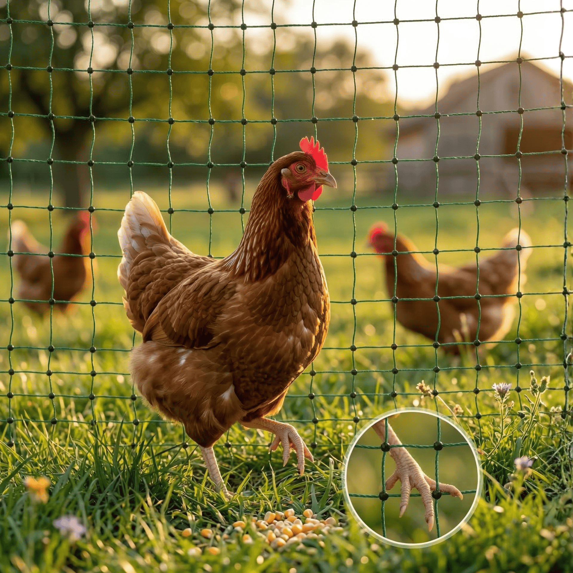 - A baromfi biztonságos tartása a kerítés hálón belül