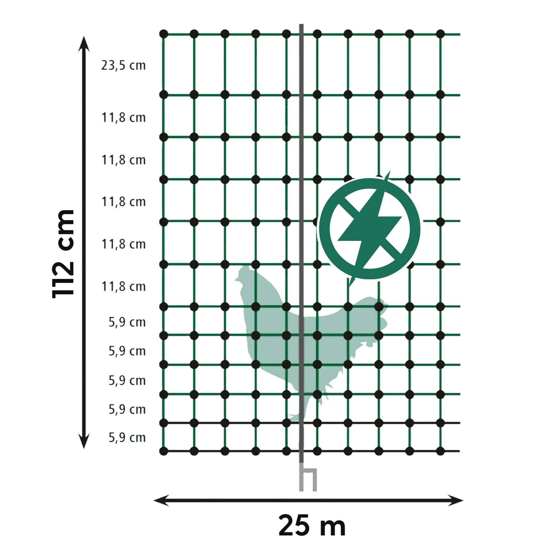 Agrarzone Classic baromfi háló áram nélkül, dupla hegyű, zöld, 25 m x 112 cm