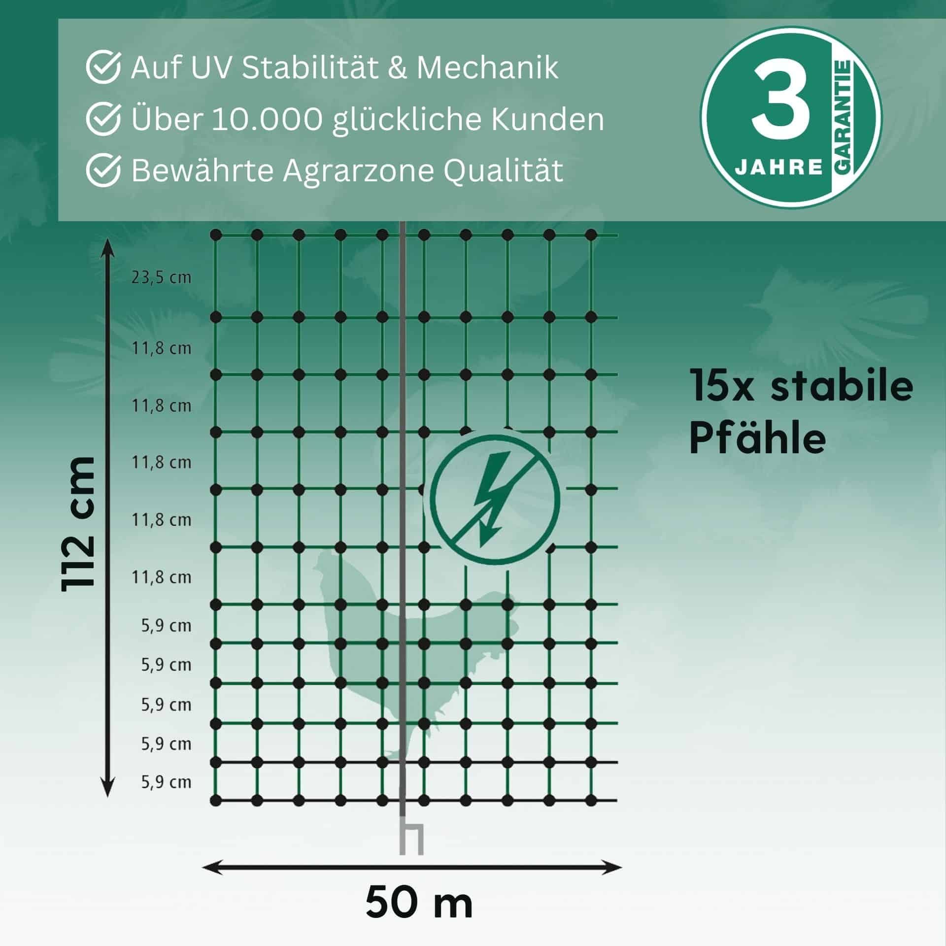 Agrarzone Classic baromfi háló áram nélkül, dupla hegyű, zöld, 50 m x 112 cm