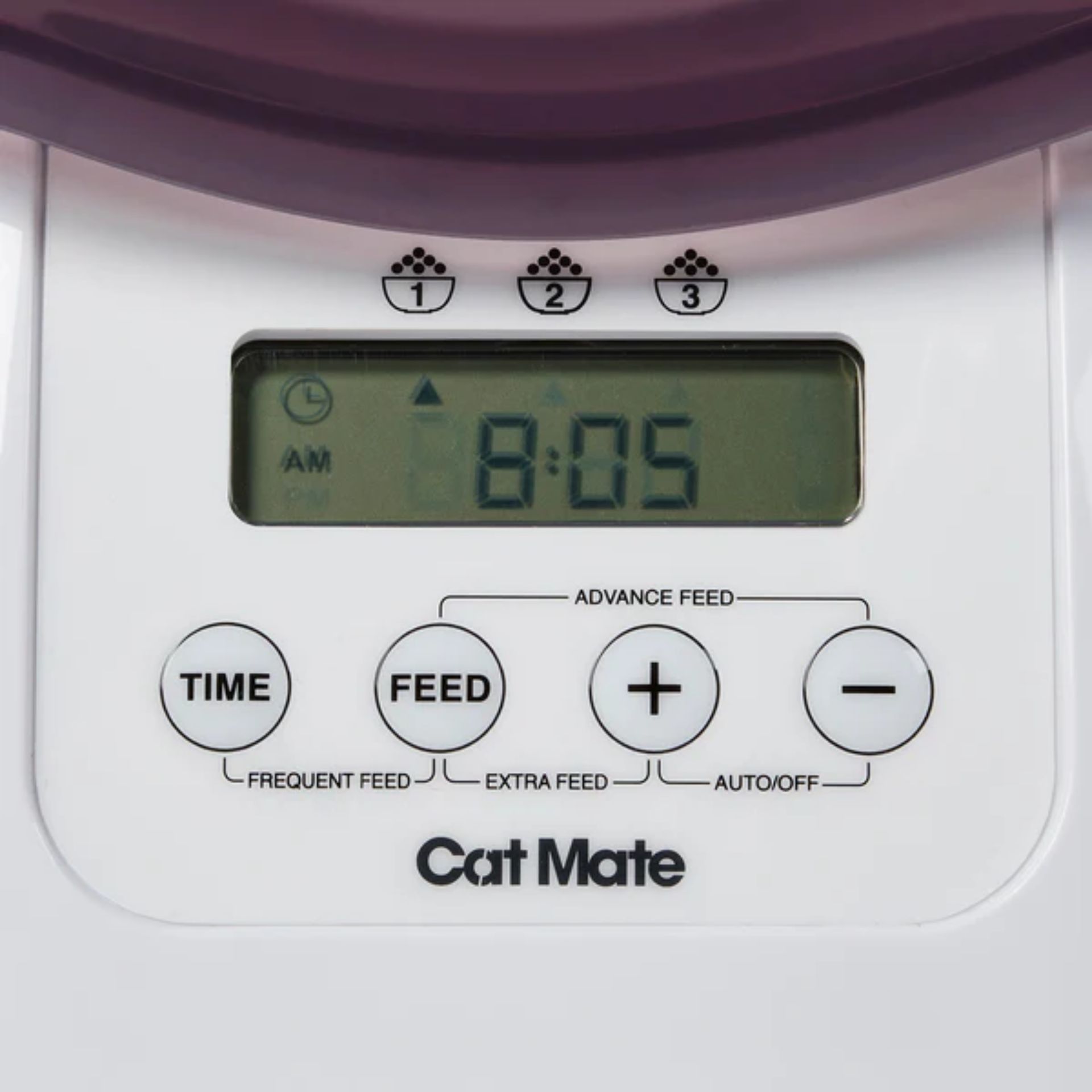 - Az ételtartó 3 kg-ig fér el (egy macskának kb. 1 hónapra elegendő)