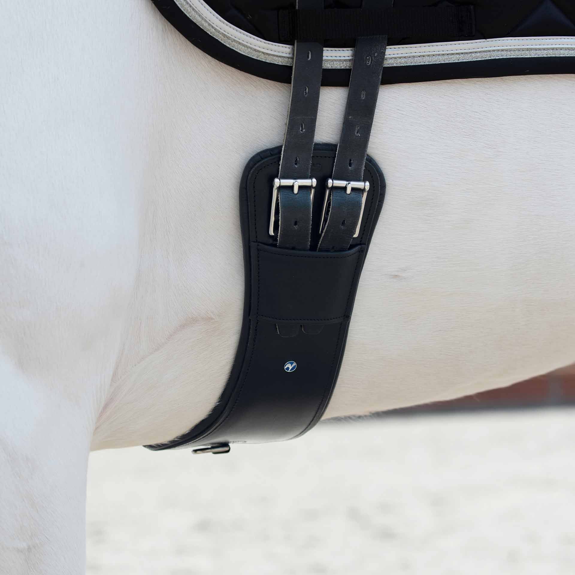 A nyeregszíj speciális holdformája optimalizálja a nyomáseloszlás eloszlását, és pontosan megakadályozza az övet, ami különösen alkalmas a hagymás lovakhoz és a kiejtett bordákkal és keskeny mellű lovakhoz.