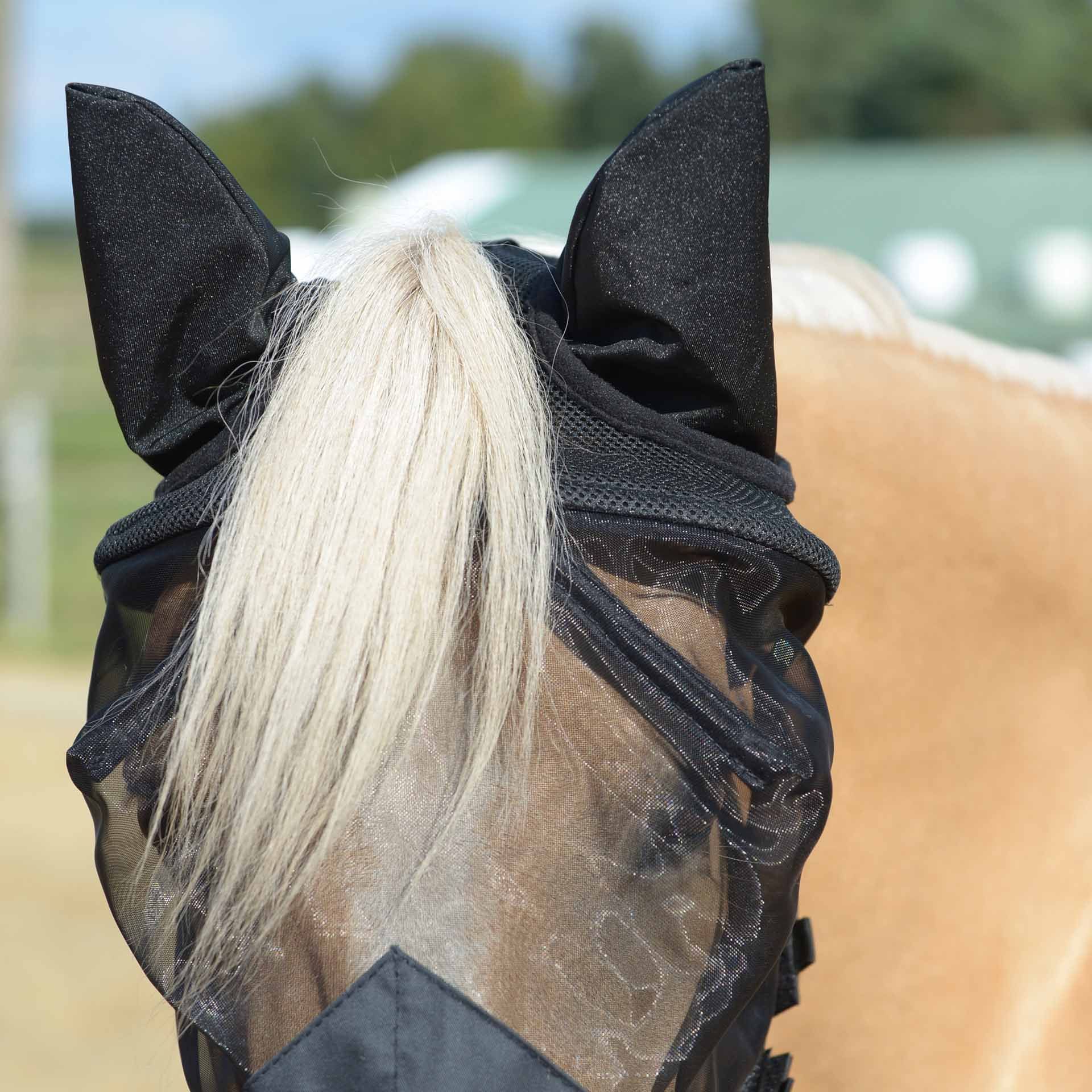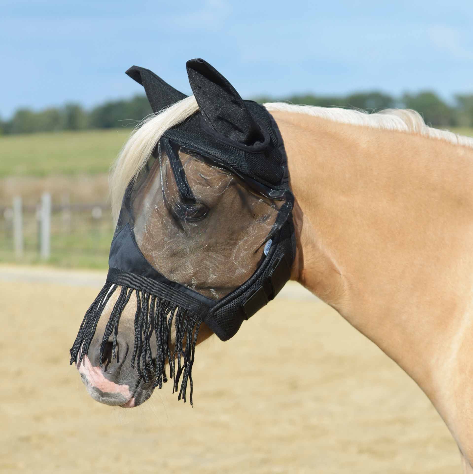 A légymaszknak jól illeszkednie kell ahhoz, hogy segíteni tudjon. Ellenkező esetben kár keletkezhet. Az illeszkedésnek illeszkednie kell a ló/póni fejéhez. A végső beállítást a termék bármely beállítási lehetőségével elvégezheti. Még egy optimálisan illeszkedő légymaszk esetén is rendszeresen, lelkiismeretesen és szakszerűen ellenőrizni kell az illeszkedést, és szükség esetén javítani kell. Ha a légymaszk elcsúszik, a látás korlátozódhat vagy elveszhet. A ló, egy repülő állat számára ez pánikot és balesetet okozhat. Az ideális ülést veszélyeztetheti például a fej környéki dörzsölés vagy a csoportban tartott fajtársak. Ilyen egyedi esetekben légymaszk használata nem javasolt. Rendszeresen ellenőrizze a szőrzetet és a bőrt, nem kopott-e. Ezeket még az optimálisan illeszkedő légymaszkok esetén is okozhatják idegen anyagok (pl. kövek, rovarok) a maszk és a ló között. Az izzadság miatt nő a bőrirritáció kockázata. Rendszeresen tisztítsa meg a maszkot.