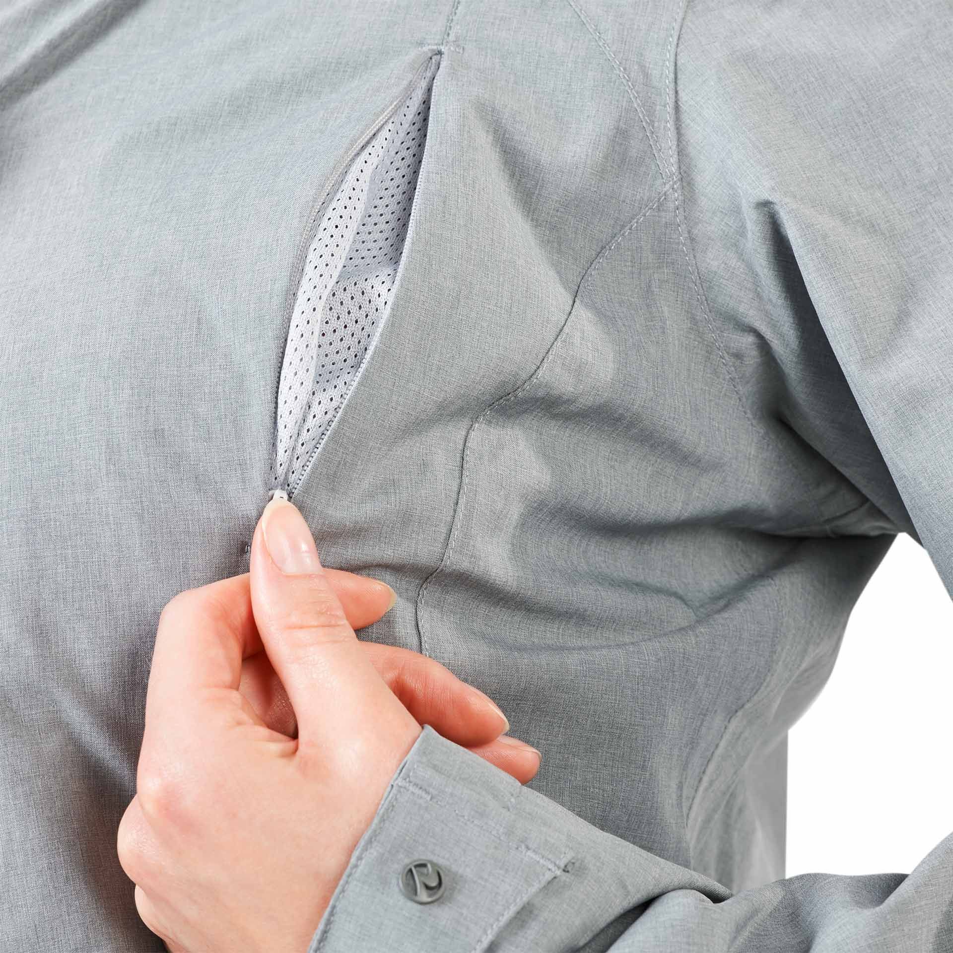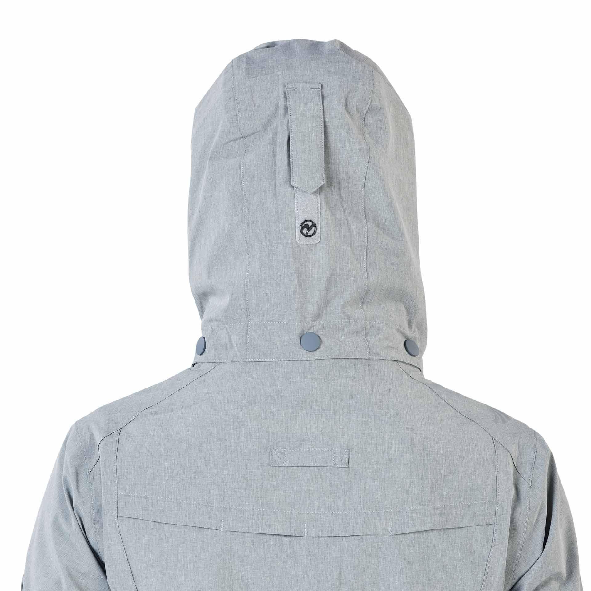 A kabátnak három tágas cipzáras zseb van, beleértve egy belső zsebét, amelynek kábelháza van a fejhallgatóhoz, előre alakú hüvelyekhez és hüvelyekhez, amelyeket a tépőzárat beállíthat. Külső anyagból áll: 90% poliészter, 10% ELASTHAN (Spandex ® ), vízálló/lélegző/elasztikus membrán 5000/5000; I. bélés: 100% poliészter, hálózati anyag; Bélés II: 100% poliészter, extra erős toffel.