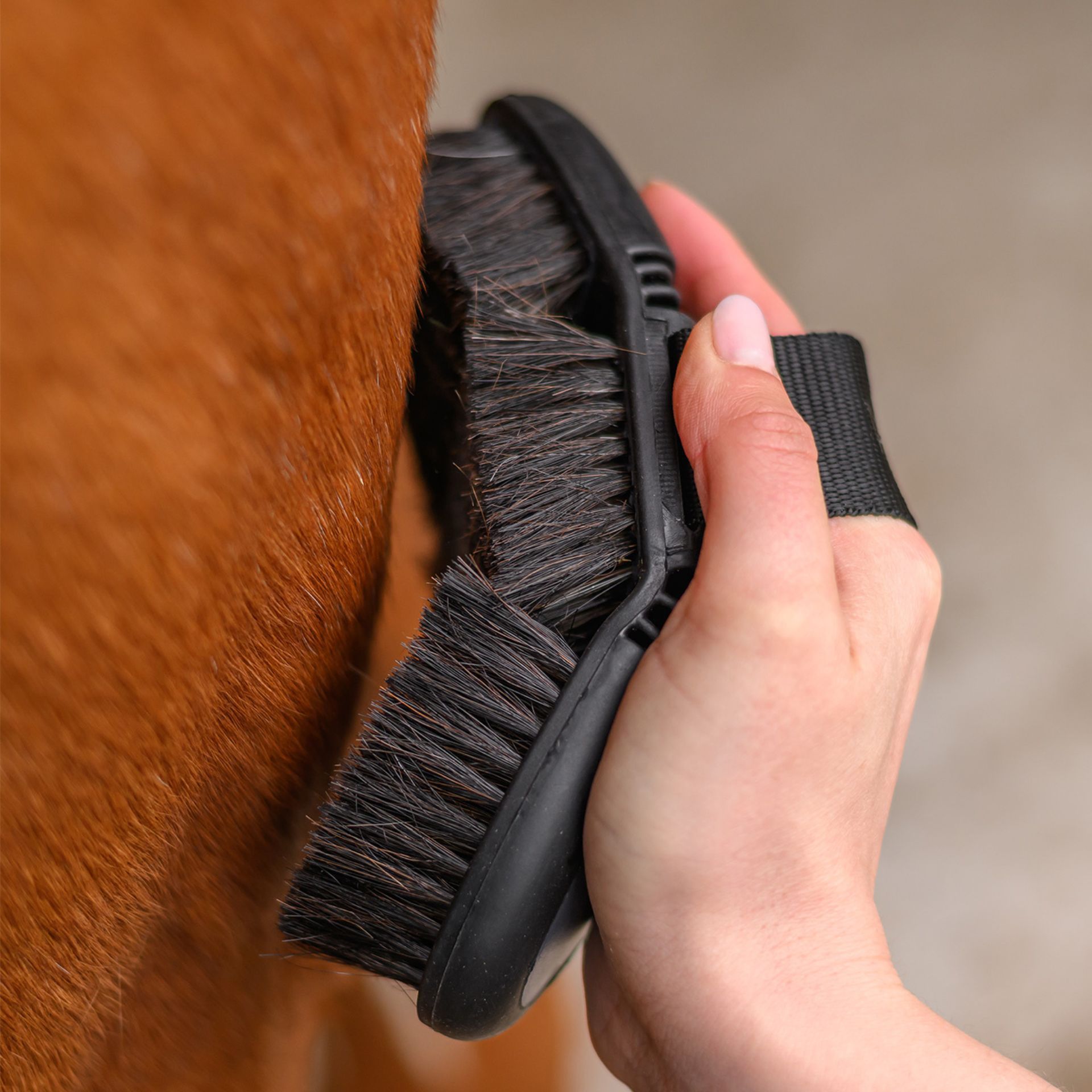 The bristle area of genuine horsehair is perfectly suited to the removal of dust, dirt and loose hair from the coat and ensures quite a special sheen.