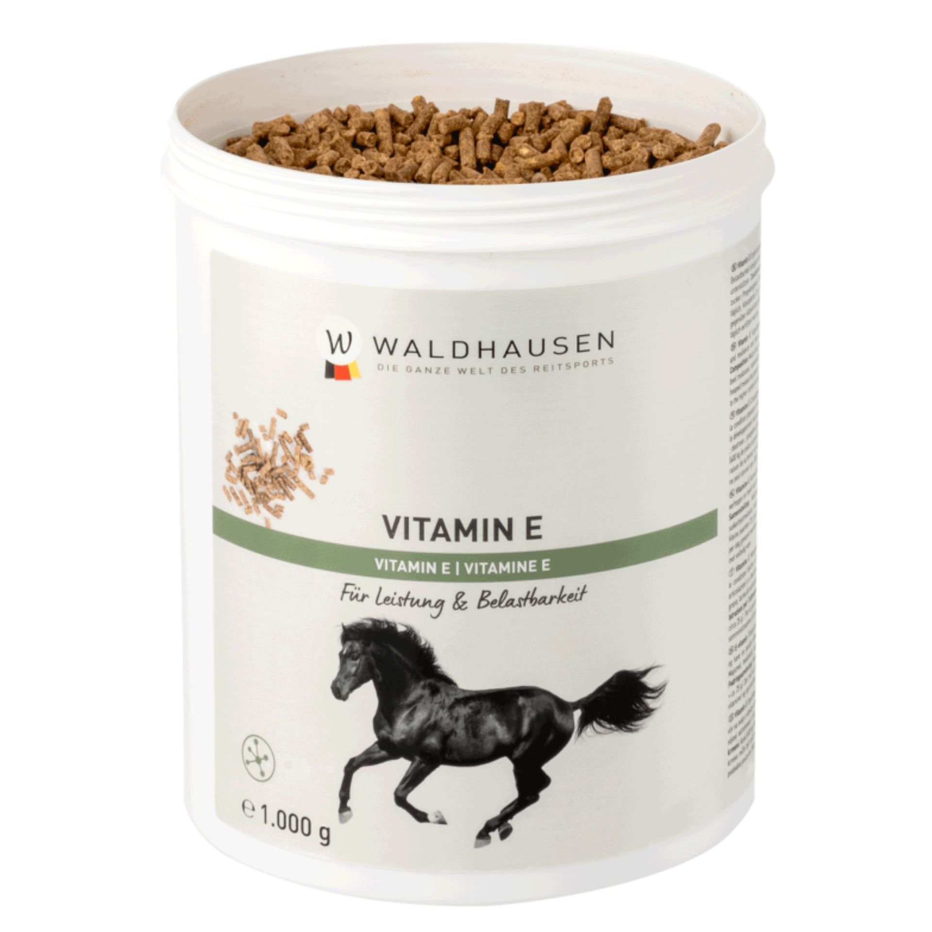Támogassa lova teljesítményét a Waldhausen Vitamin E Forte-val! Észre fogja venni, hogy növeli lova kondícióját és terhelhetőségét. A kiváló minőségű E-vitamin pellet formájában hozzájárul ahhoz, hogy lova fittnek és erőteljesnek érezze magát.