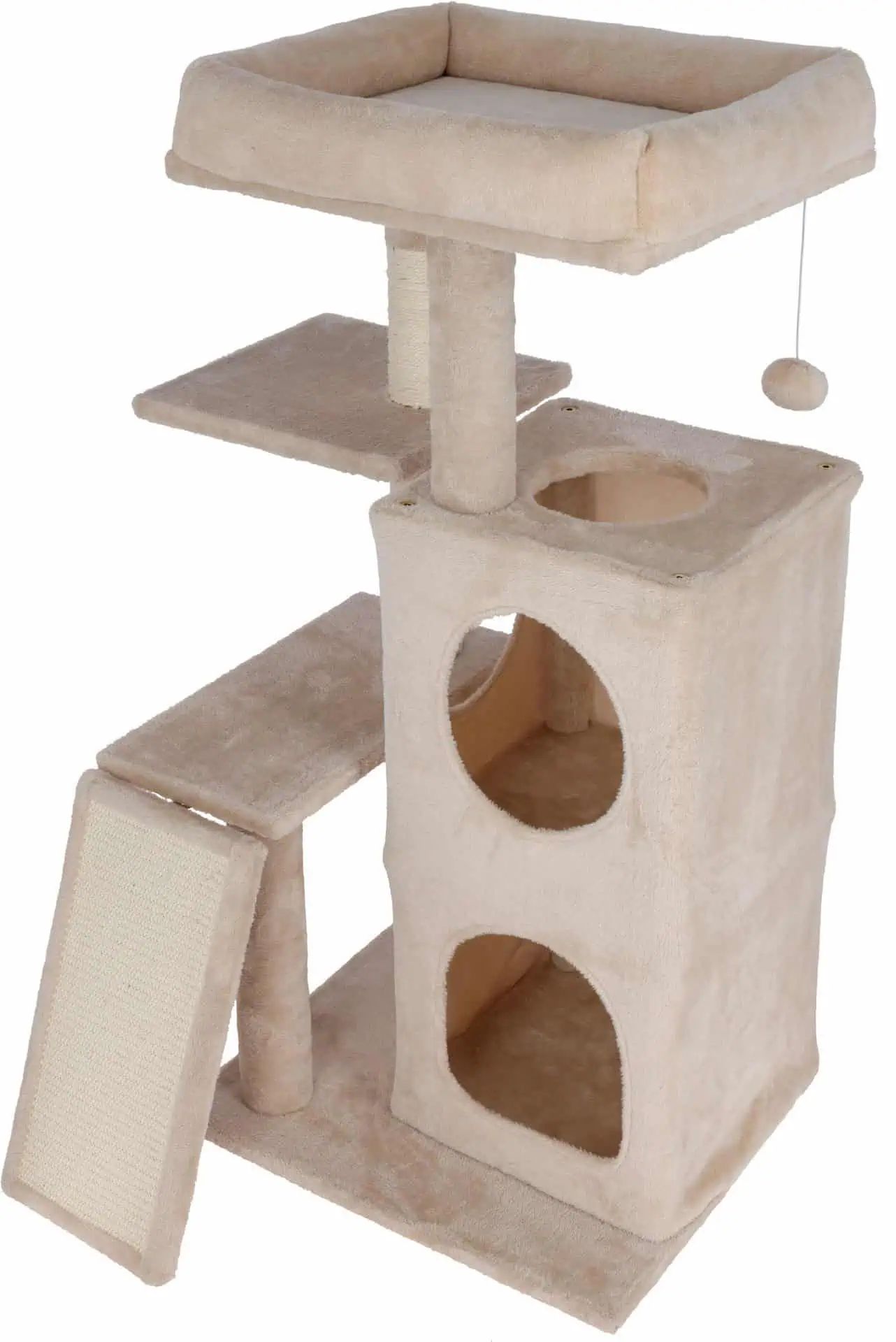 Kiváló minőségű anyagokból készült, a kaparófa hosszú ideig elkíséri szőrös barátját. A robusztus szizál felületek és a puha plüss huzatok garantálják a stabilitást és a kényelmet.