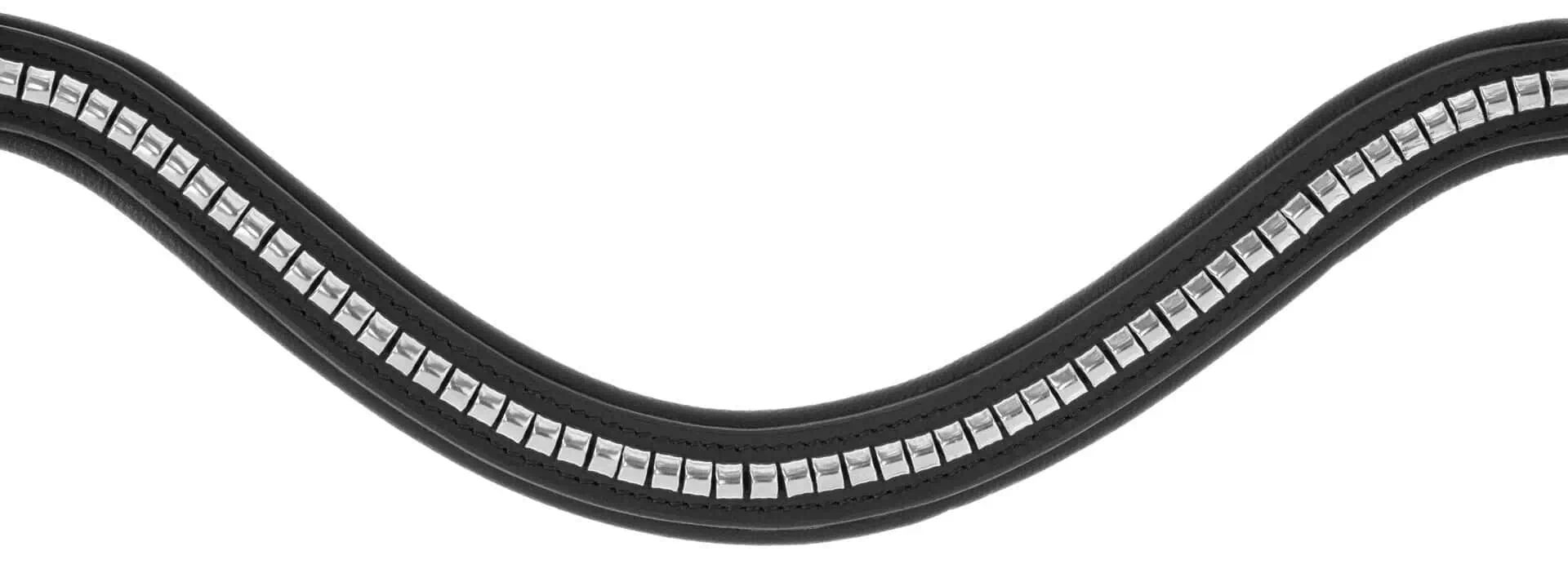 Az íves homlokszíj Clincher díszítéssel biztos és elegáns illeszkedést garantál. A kiváló minőségű, rozsdamentes szerelvények hosszú élettartamot és ellenállóságot biztosítanak. A kantár a legfinomabb bőrből készült és kiváló minőségű kidolgozással győz meg.