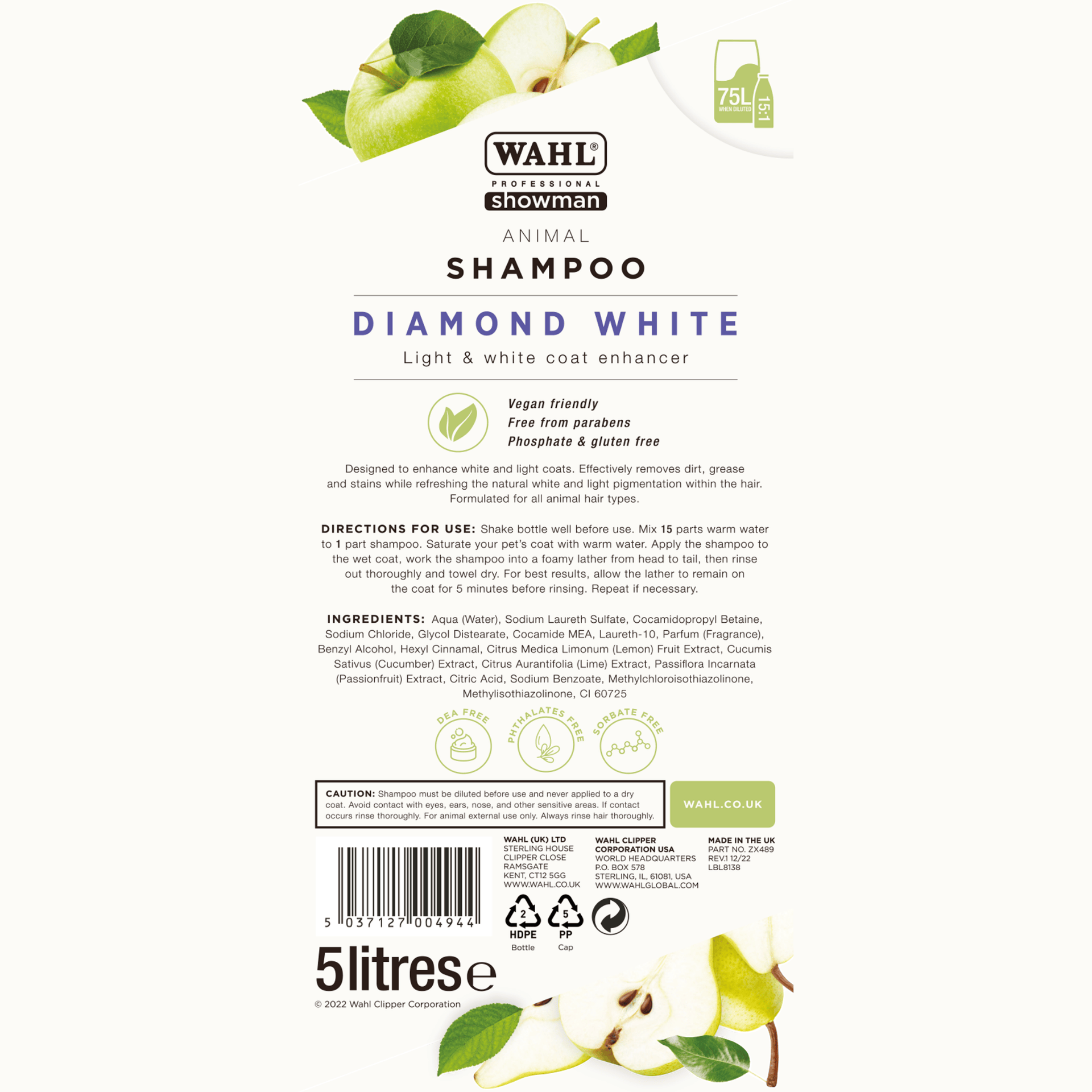 Wahl Diamond White Sampon koncentrátum fehér & világos szőrzetre 5 L