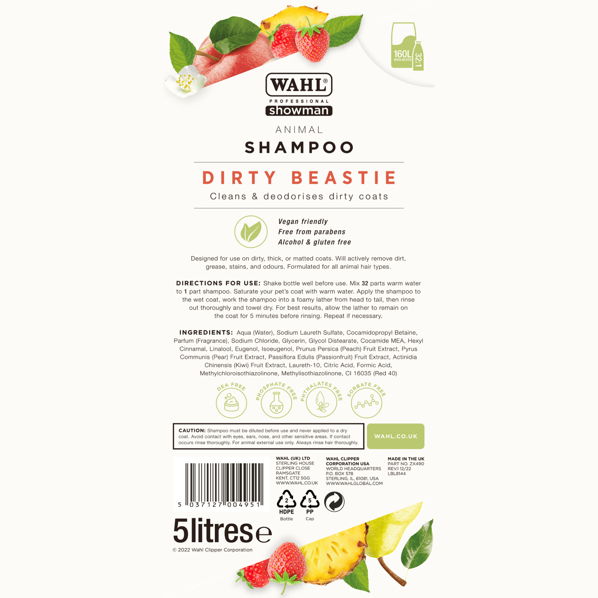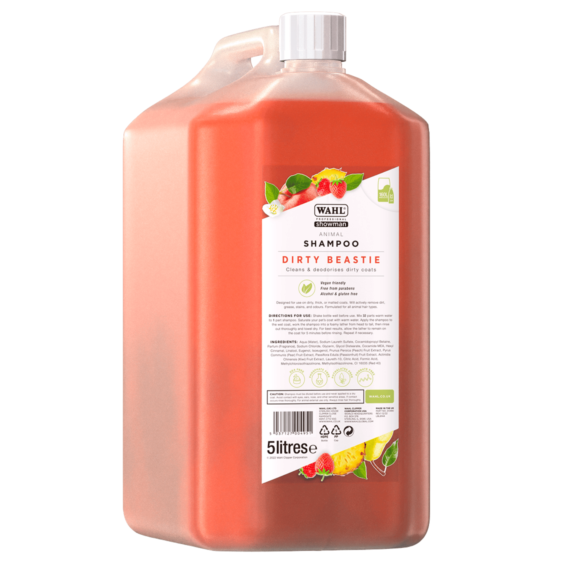 A Wahl Dirty Beastie sampon koncentrátumot kifejezetten az extrém piszkos, vastag vagy gubancos szőrzet intenzív tisztítására fejlesztették ki. A termék legnagyobb előnye a kivételesen nagy kiadóssága: 1:32 arányú szuperkoncentrátumként egyetlen 500 ml-es flakonból 16 liter használatra kész sampon keverhető ki. Ez ideális, gazdaságos választássá teszi rendszeres használatra vagy szakemberek számára.