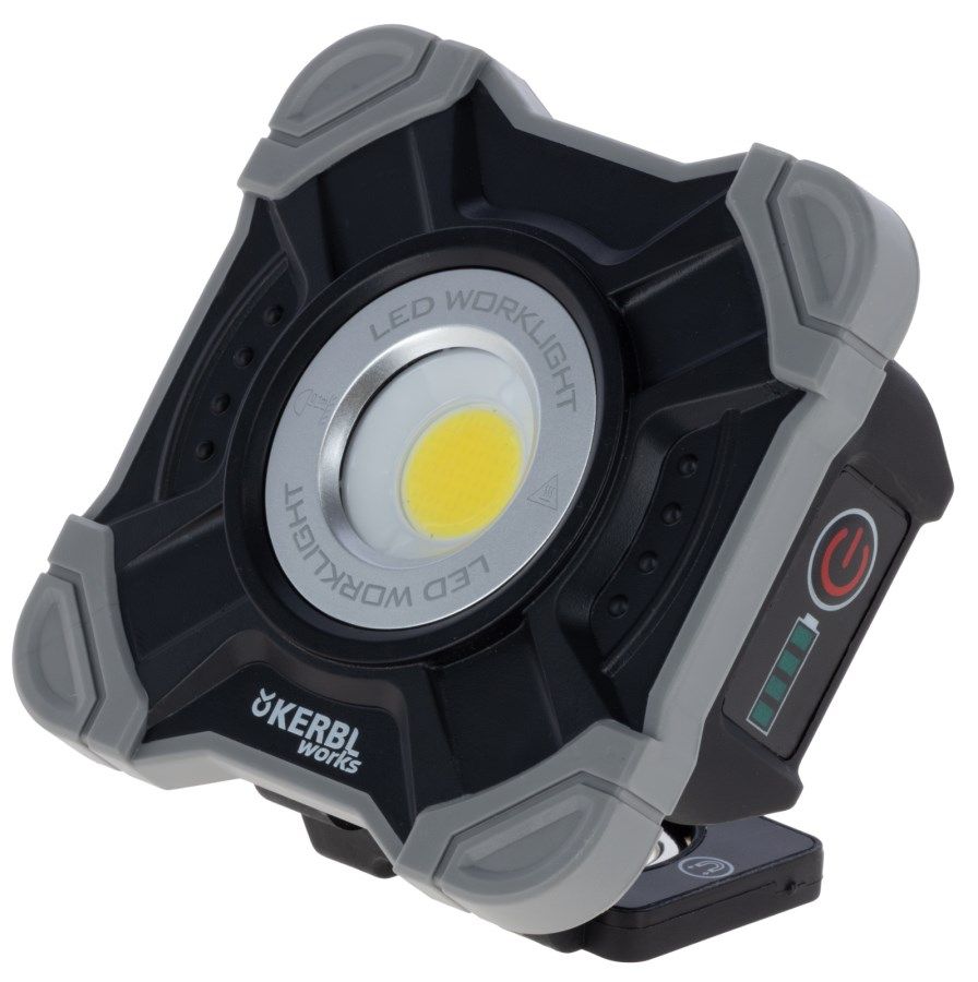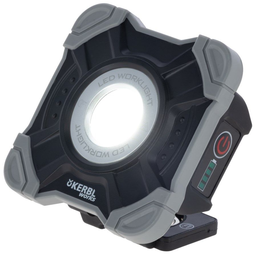 A Kerbl mobil LED reflektor WorkFire 1000 segítségével mindig kéznél lesz az erős világítás, bárhová is sodorjon a munkád. Lenyűgöző, 1000 lumenes fényárammal rendelkezik, mindezt egy rendkívül kompakt és masszív házba csomagolva, amely az élvédőknek köszönhetően remekül bírja a strapát. Legyen szó műhelyről, építkezésről vagy kempingezésről – ez a sokoldalú segítőtárs minden kihívásra készen áll.