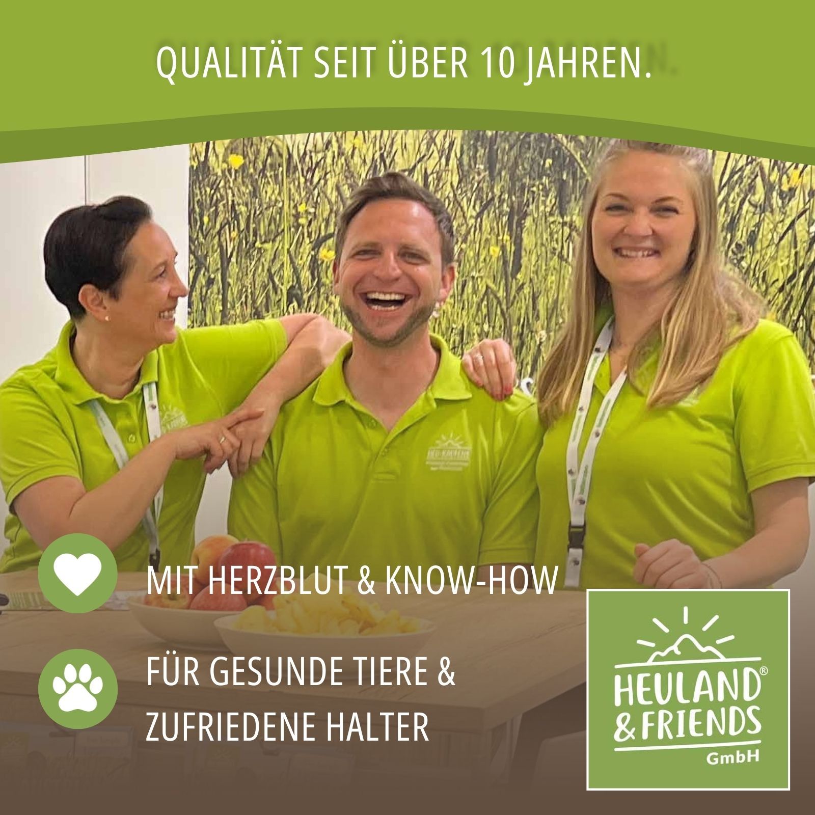 A Heuland prémium nyútszénaját a salzburgi alpesi előhegységből származó több mint 30 minőségi fű és gyógynövény felhasználásával készíti. A különösen kíméletes betakarítási eljárásnak és a kontrollált beltéri szárításnak köszönhetően megőrződnek a fontos vitaminok, ásványi anyagok és nyomelemek. 2015 óta a Heuland kiváló minőségű szénát kínál, amelyet Ausztria határain túl is nagyra értékelnek.