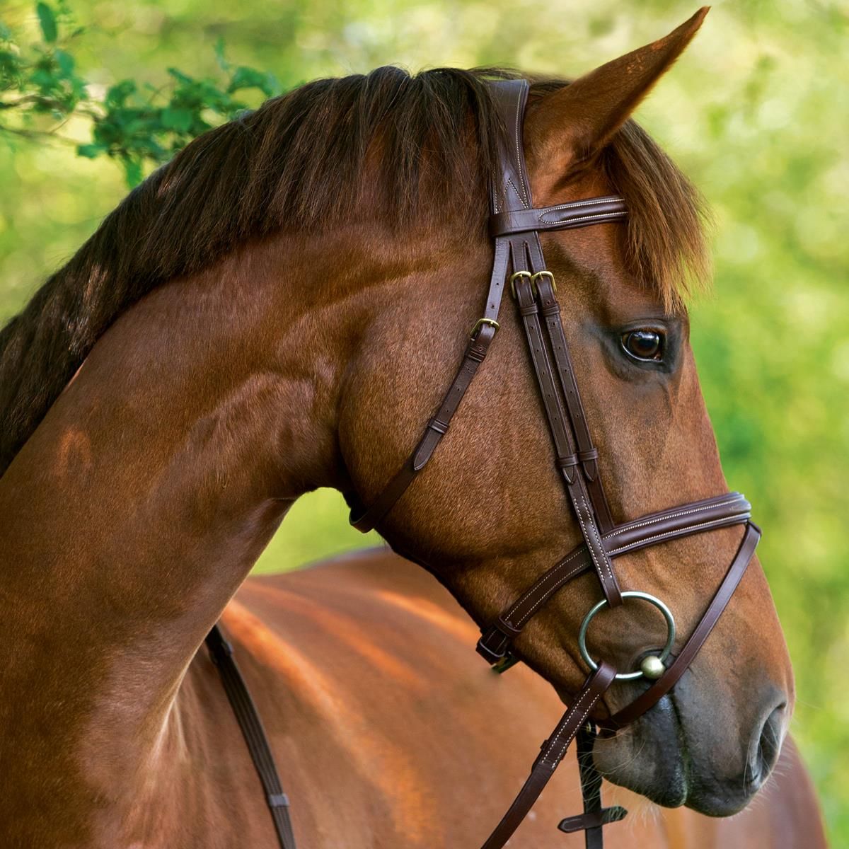 Ez a gyönyörű barna, klasszikus stílusú kantár kiváló minőségű bőrből készült.